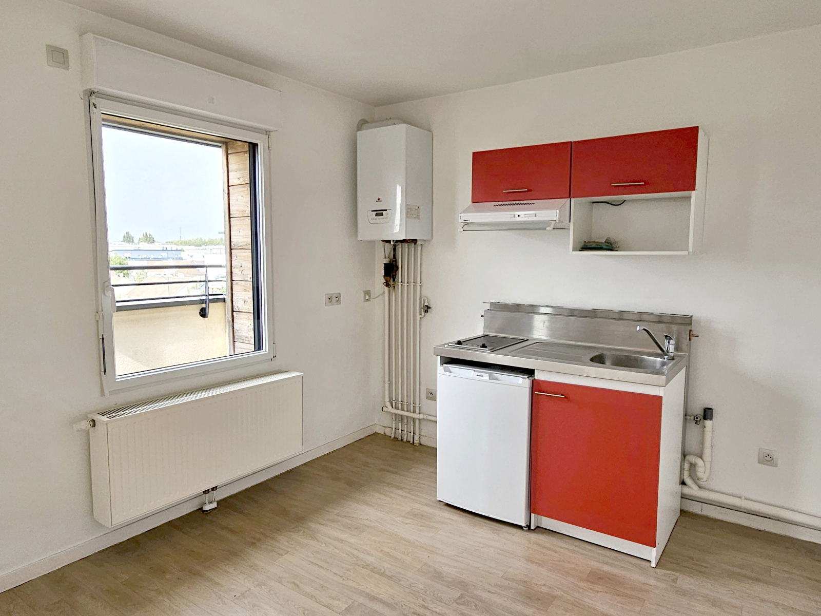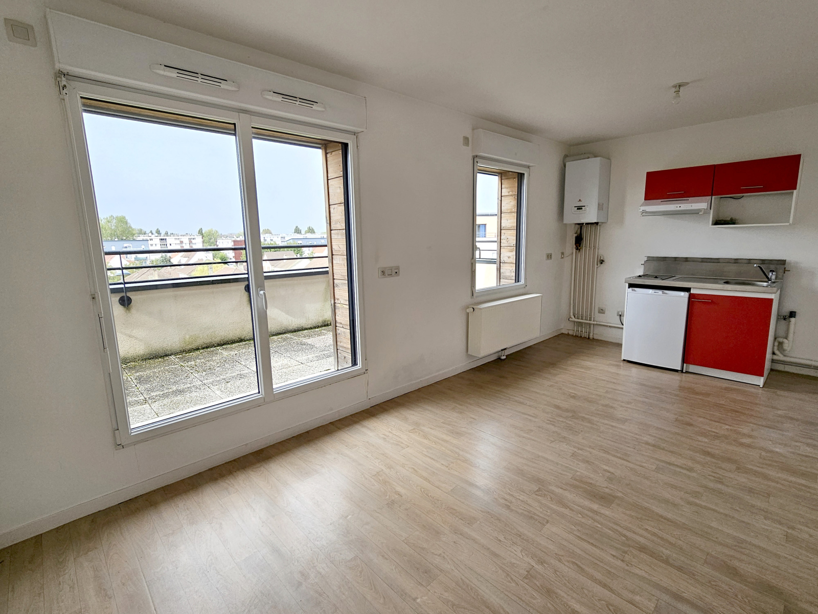Compiègne (60200)Proche ESCOM et UTC. Dans résidence récente avec ascenseur, au 3e et dernier étage, beau studio de 27.40 m² offrant : entrée avec placard, pièce principale avec kitchenette, grande salle de bains équipée avec wc. Belle terrasse avec vue dégagée. Place de parking en sous-sol. A VISITER !