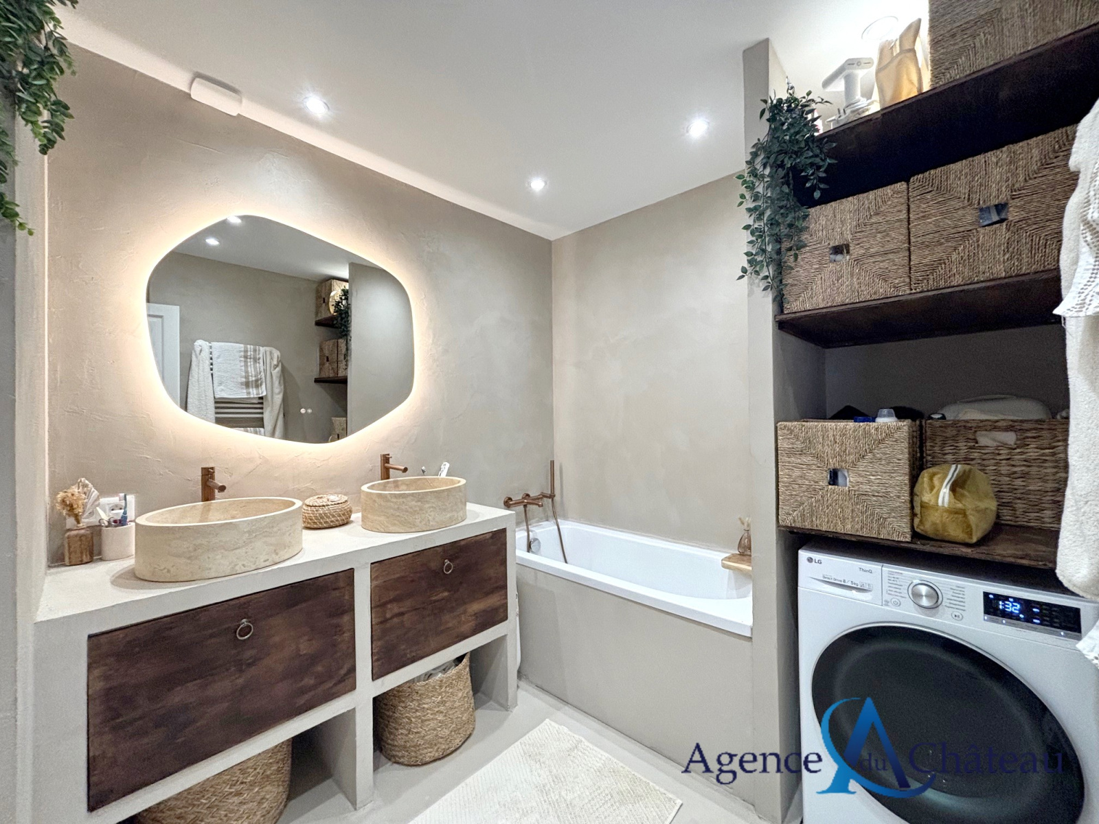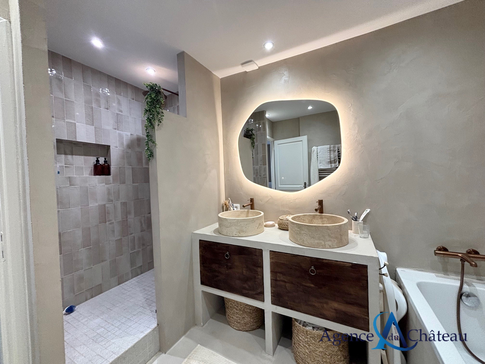 au 1er étage : un palier, une chambre avec son dressing équipé, une salle de bains équipée avec douche et coin laverie, une autre chambre, un wc.