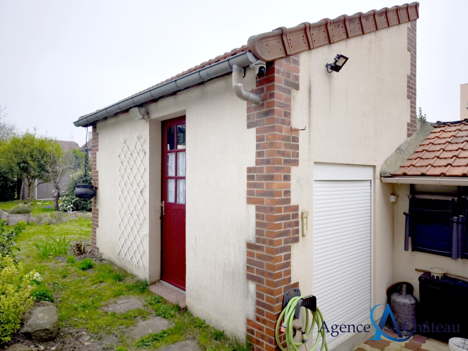 Compiègne (60200)Au coeur du Triangle d'or, 20 minutes à pied de la gare, jolie maison de ville en briques bien entrenue offrant au rez-de-chaussée : une entrée, un séjour, une cuisine équipée ouverte sur la salle à manger, un wc avec lave-mains, à l'étage : un palier, trois chambres, une salle de douche équipée avec wc, une buanderie. Un sous-sol cave divisé en trois pièces. Une dépendance pouvant servir de bureau iindépendant. Grande terrasse exposée sud. Jardin paysagé clos de 203 m². A VISITER !