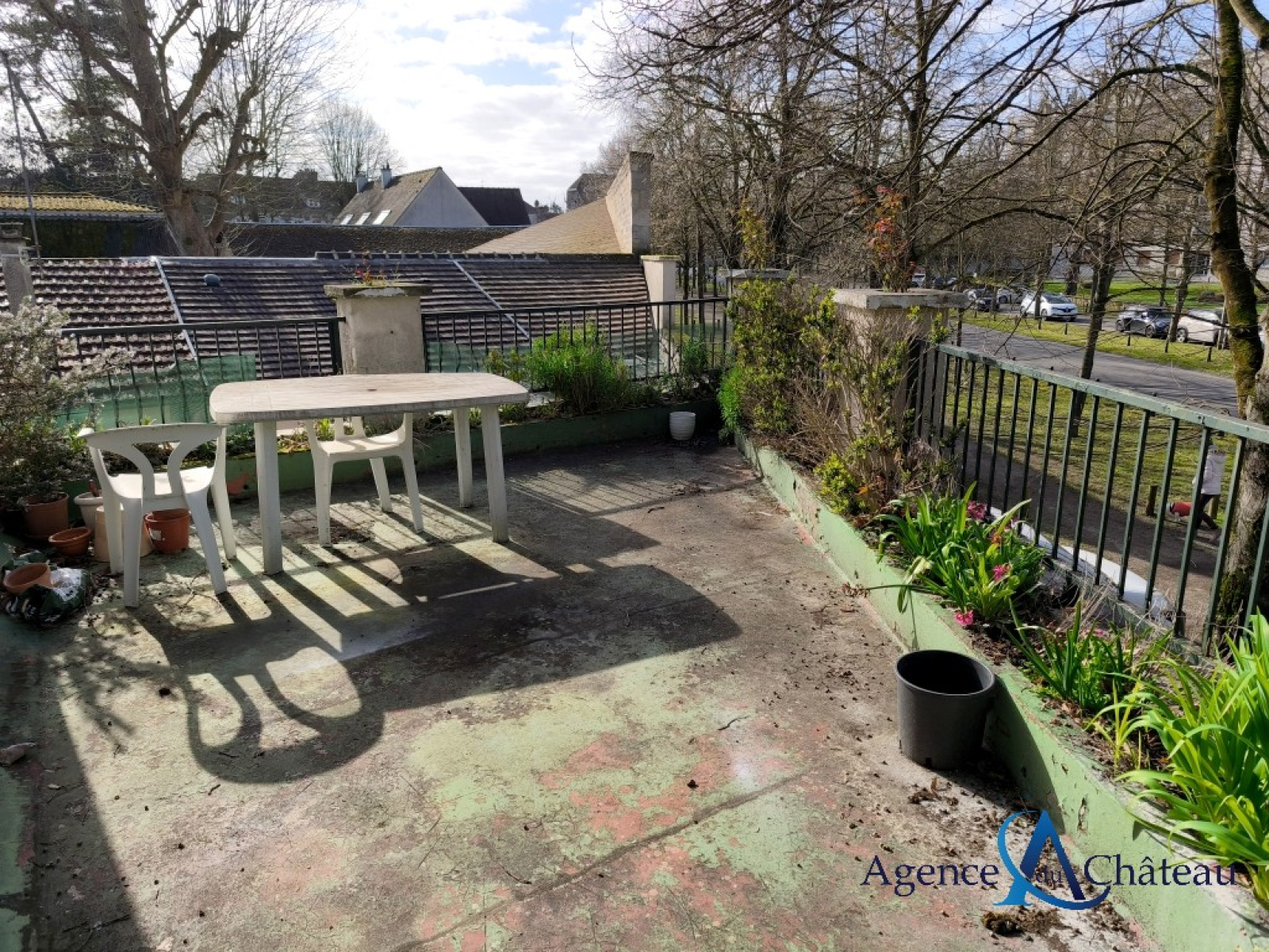 En exclusivité, dans une petite copropriété à très faibles charges, Appartement de type 5 en duplex au 1er étage sans ascenseur, surface habitable 90.12 m² (103.55 m² au sol) comprenant : une entrée, un séjour/ salle à manger avec cheminée insert de 38 m², une cuisine équipée ouverte sur le séjour, une chambre, une buanderie, un wc, UNE GRANDE TERRASSE 28 M². A l'étage au dessus : un palier avec placards, deux chambres avec placards, une salle de bains, un wc. Un garage fermé dans la cour.