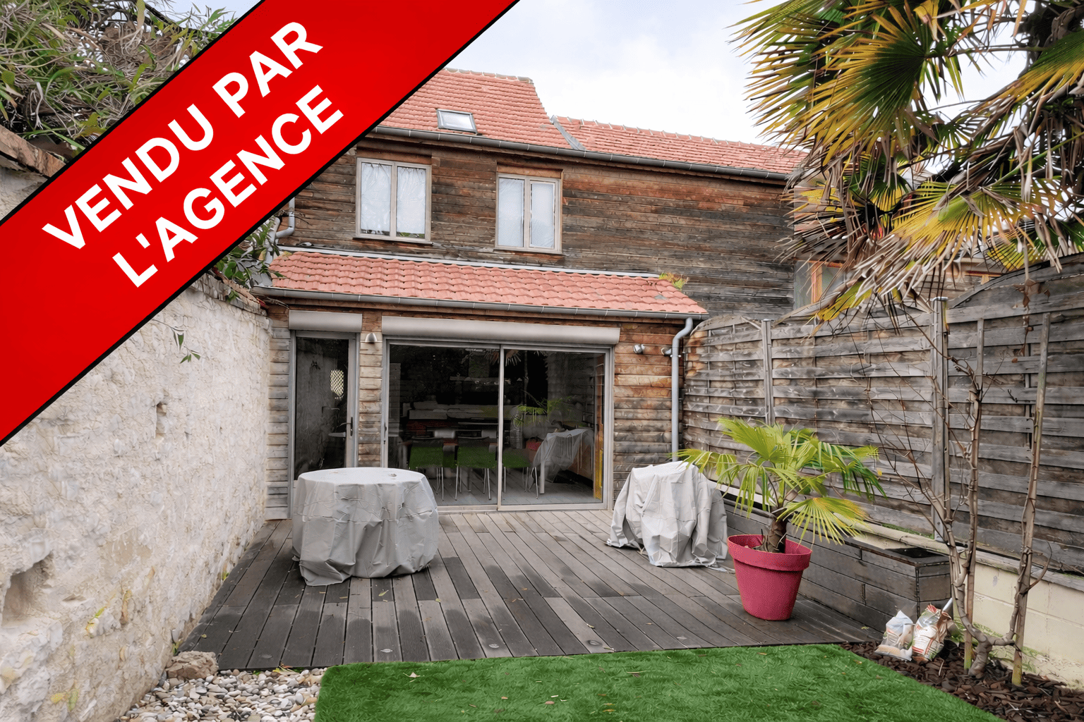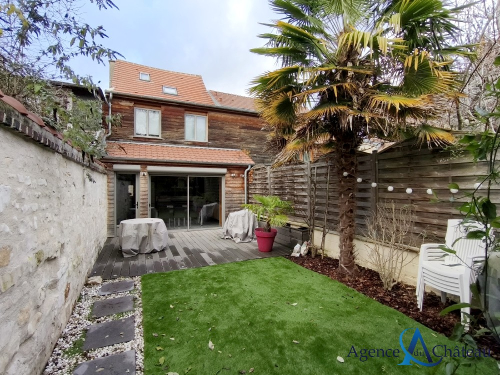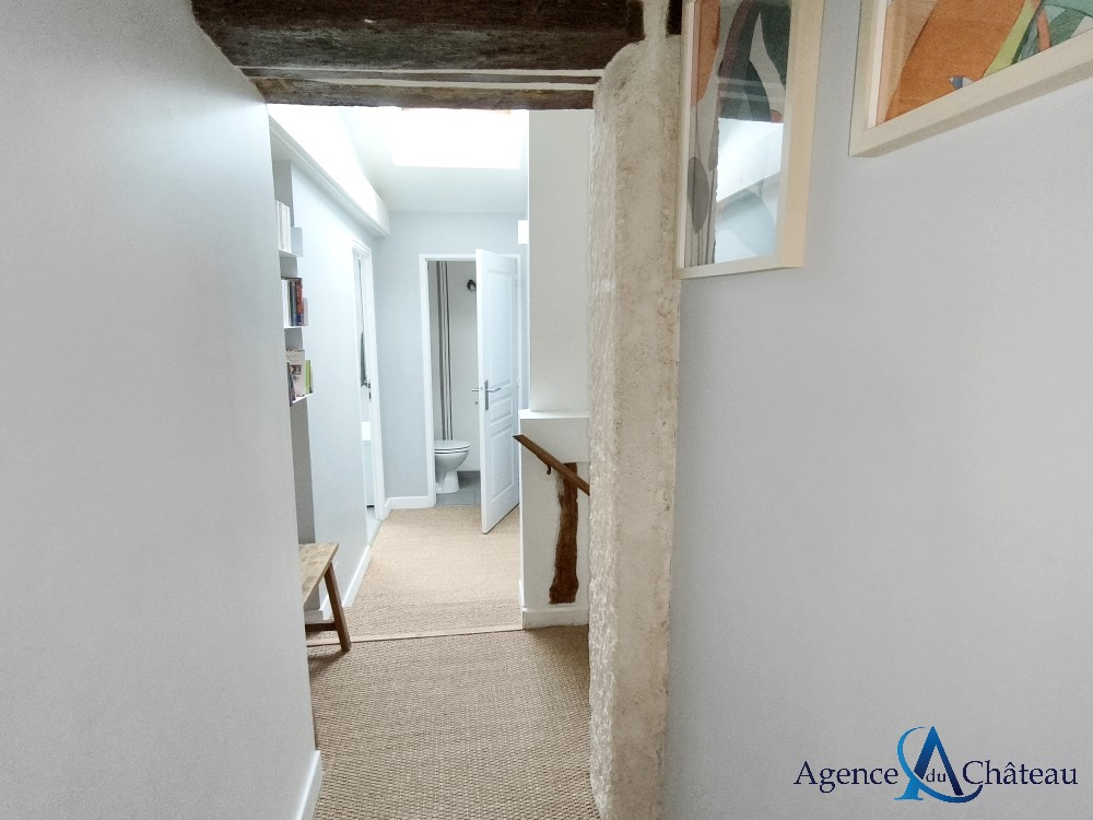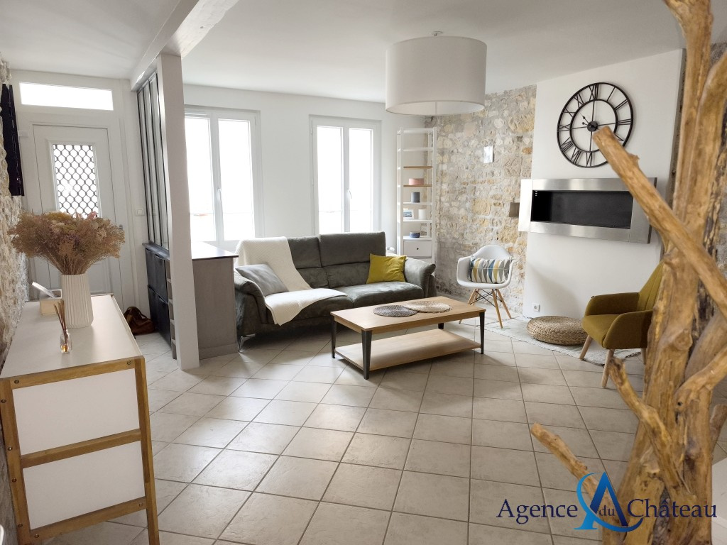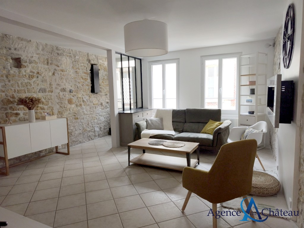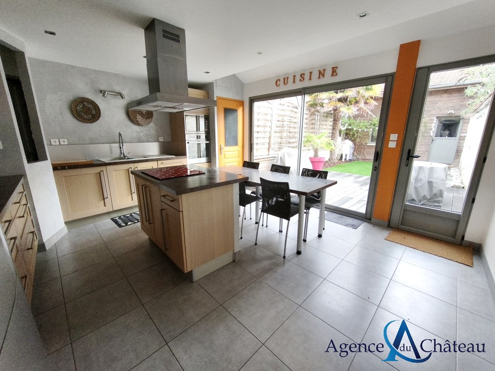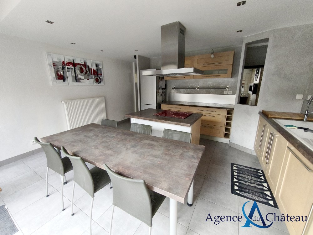 Compiègne (60200)Maison de ville en pierre avec beaucoup de cachet, en très bon état, comprenant au rez-de-chaussée : une entrée, un séjour lumineux, une belle cuisine équipée avec ilôt central donnant sur la terrasse, salle de douche avec wc