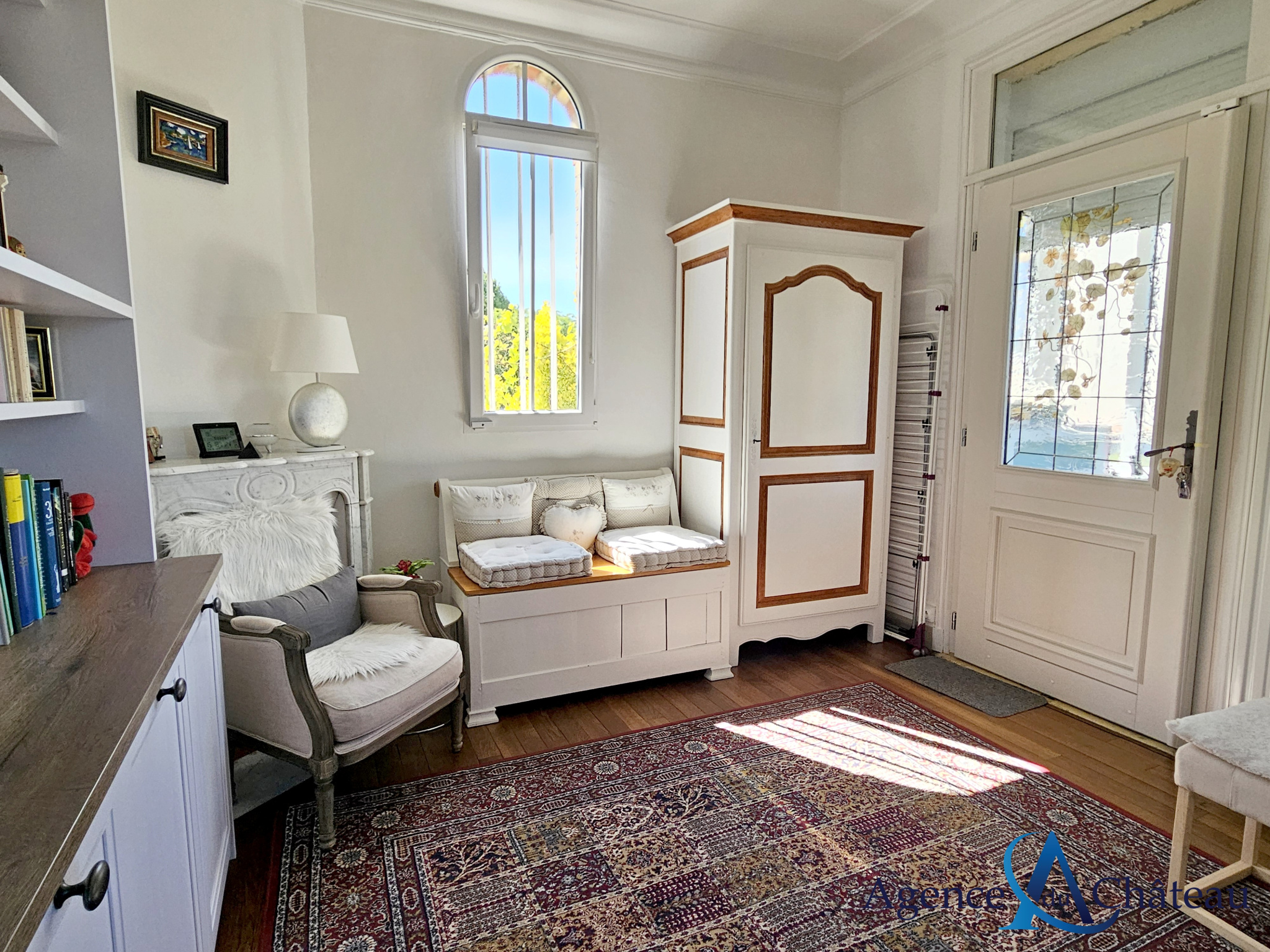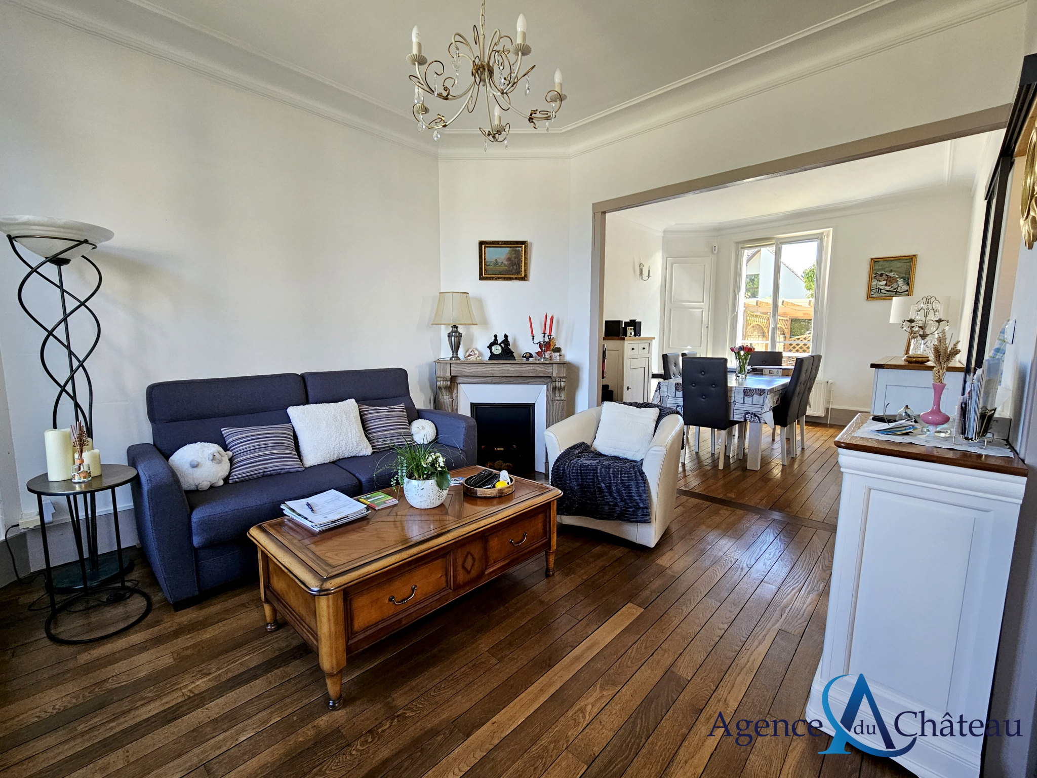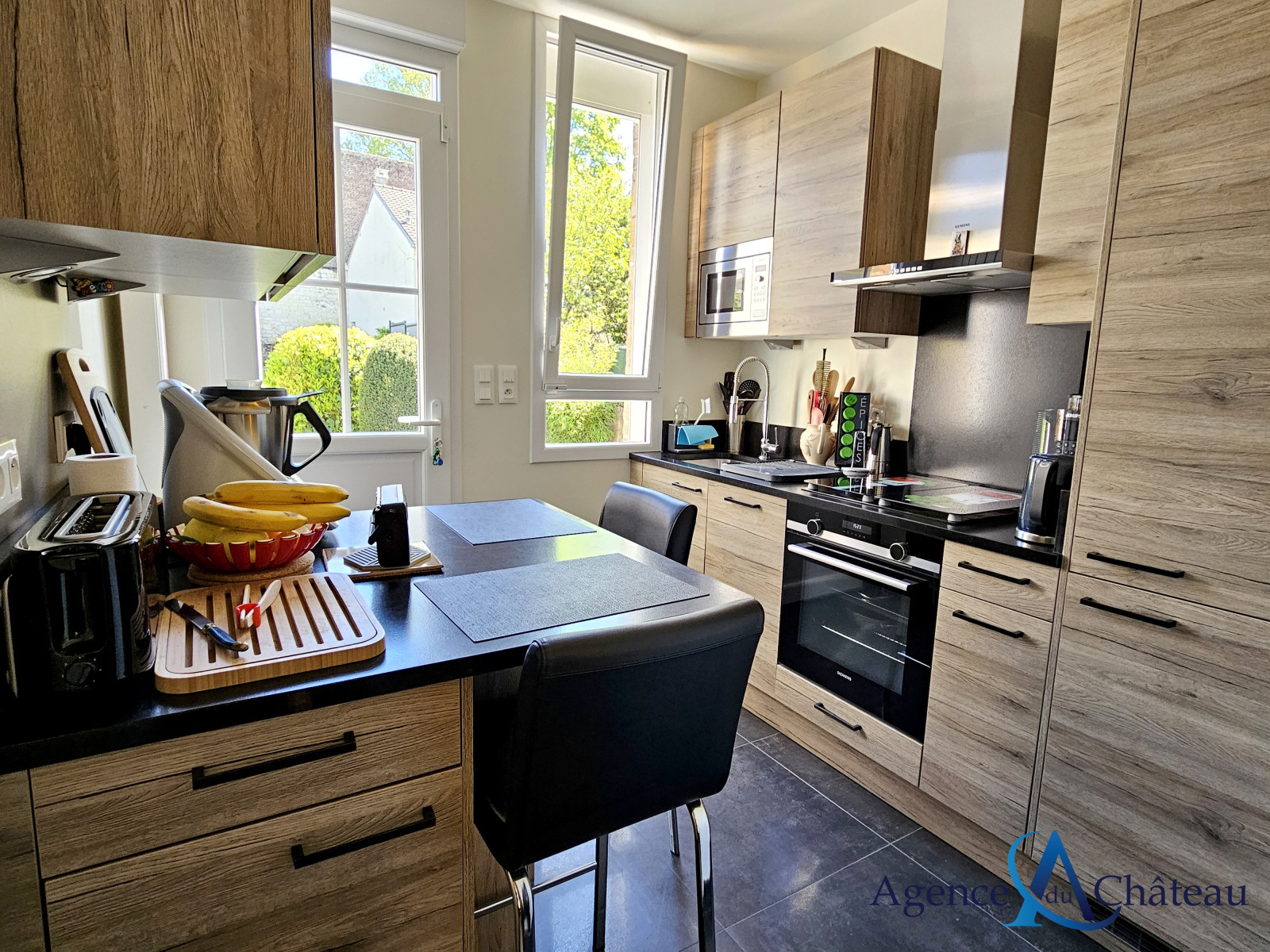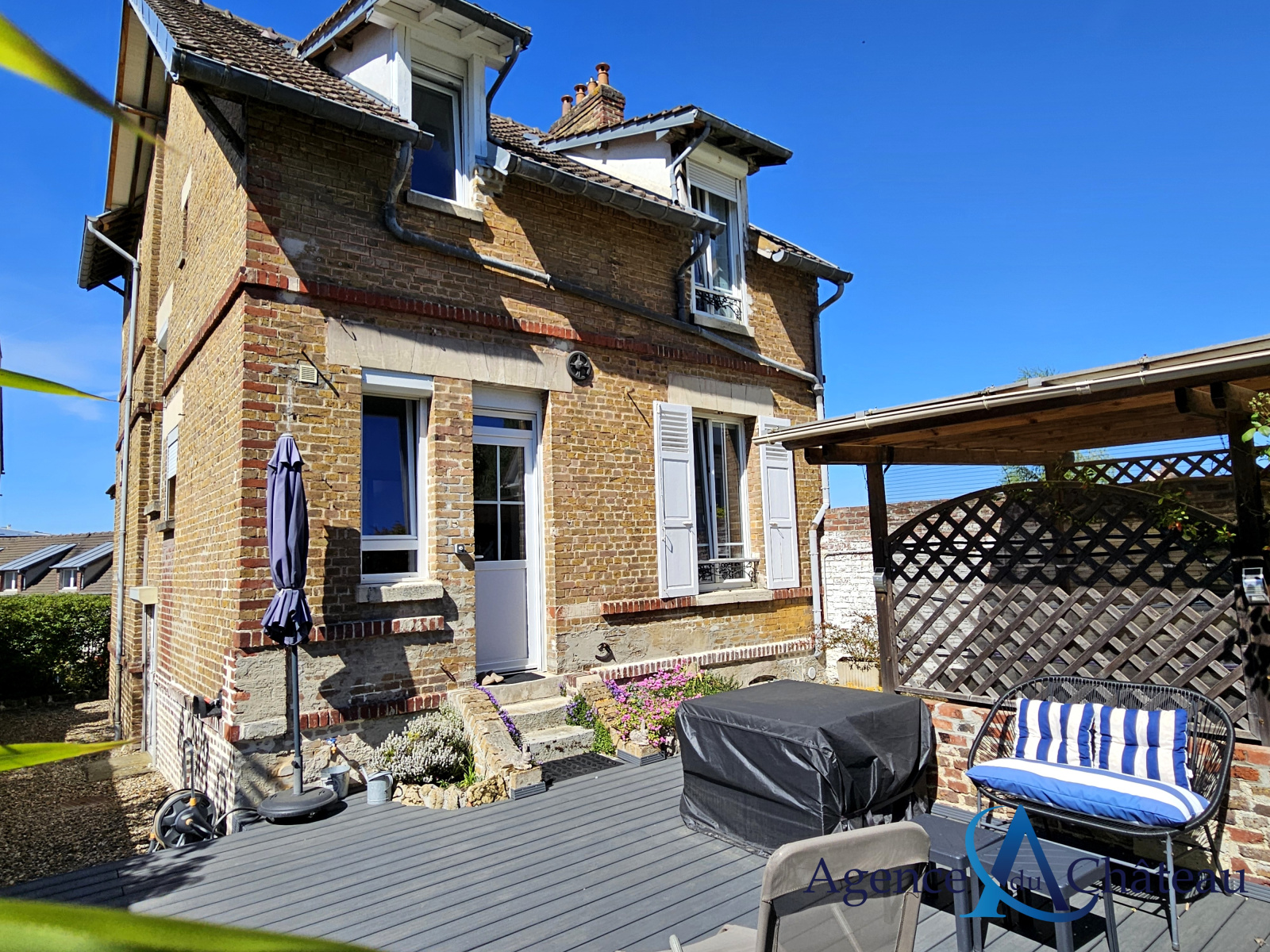 Compiègne (60200)COMPIEGNE Proche centre ville et gare, jolie maison ancienne indépendante, en très bon état, offrant au rez-de-chaussée : une entrée par véranda, un espace bureau, un séjour double avec cheminées, une cuisine équipée donnant sur la terrasse, un dégagement, un wc avec lave-mains.