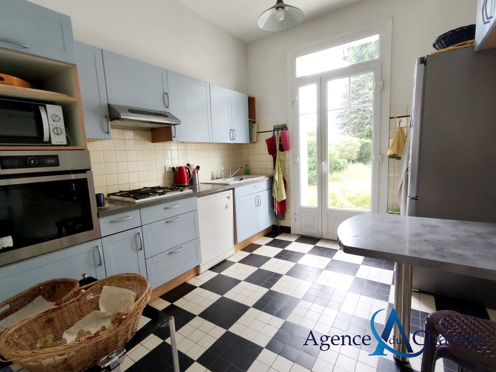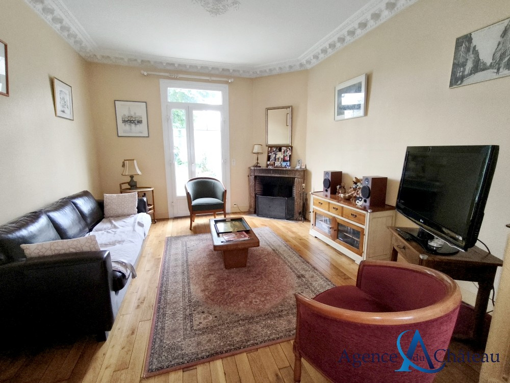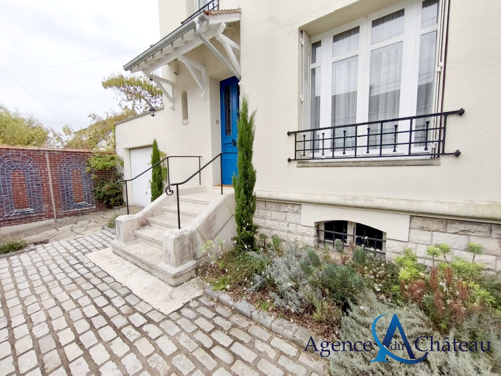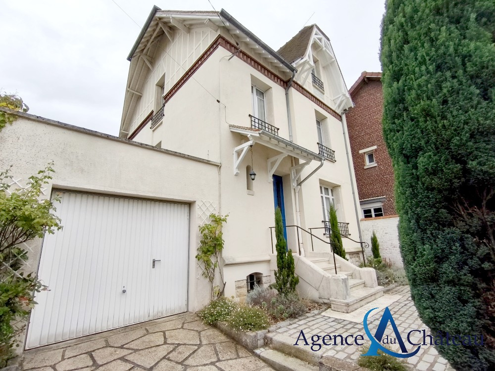 Compiègne (60200)Belle maison de style bourgeoise indépendante, en retrait de rue, offrant au rez-de-chaussée : une entrée, un séjour double avec cheminée, une cuisine équipée donnant sur le jardin, un wc. Au 1er étage : un palier, deux grandes chambres, un bureau, une salle de bains équipée avec douche et wc. Au 2e étage : un palier, deux chambres, une salle de douche équipée. Un sous-sol complet. Garage 2 voitures. Terrasse. Beau jardin clos de murs de 507 m². BEAUCOUP DE CACHET !