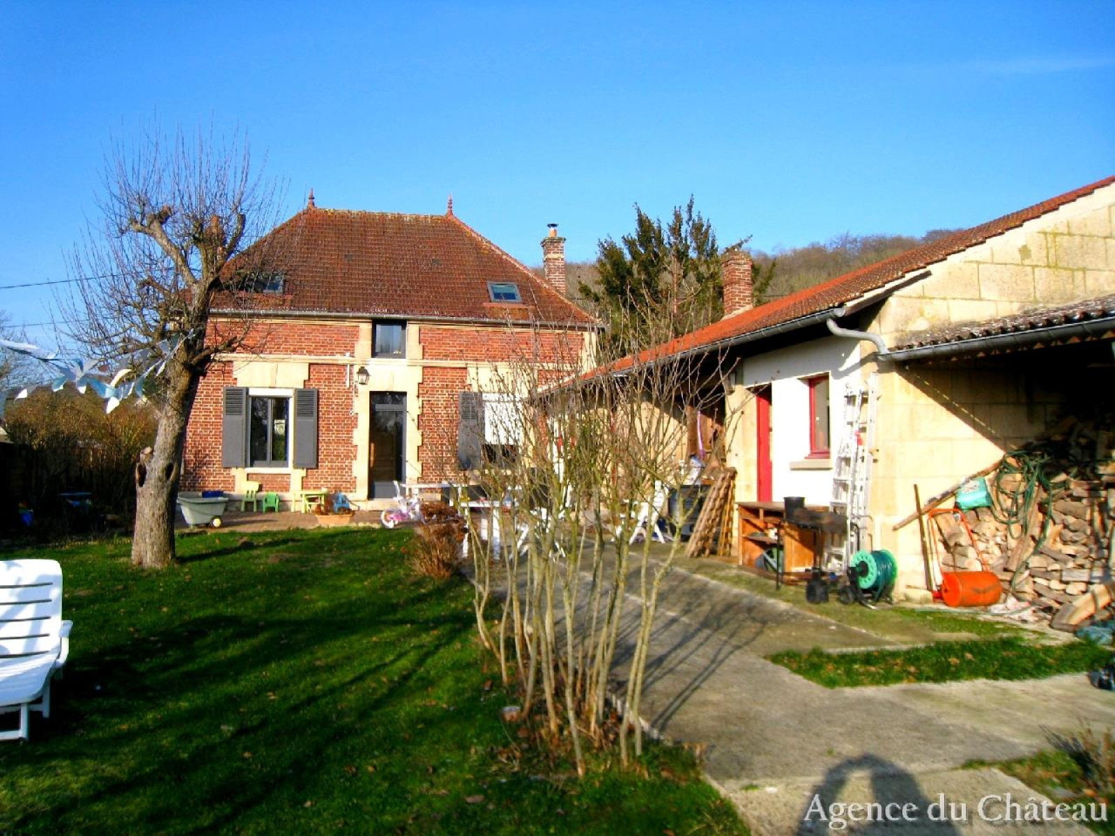 COMPIEGNE 15 KM Belle maison bourgeoise indépendante, en retrait de rue, de 130 m² habitable, en très bon état, offrant au rez-de-chaussée : entrée, double salons avec cheminée, salle à manger avec cheminée, cuisine équipée, wc avec lave-mains. A l'étage : grand palier desservant 3 belles chambres, salle de bain équipée avec wc. Beau jardin avec terrasse de 1300 m². Dépendances, cave voûtée. Possibilité de rentrer les véhicules. DU CACHET ! Agence du Château, spécialisée en transaction et location, à votre service depuis 1992. N'hésitez pas à nous contacter !